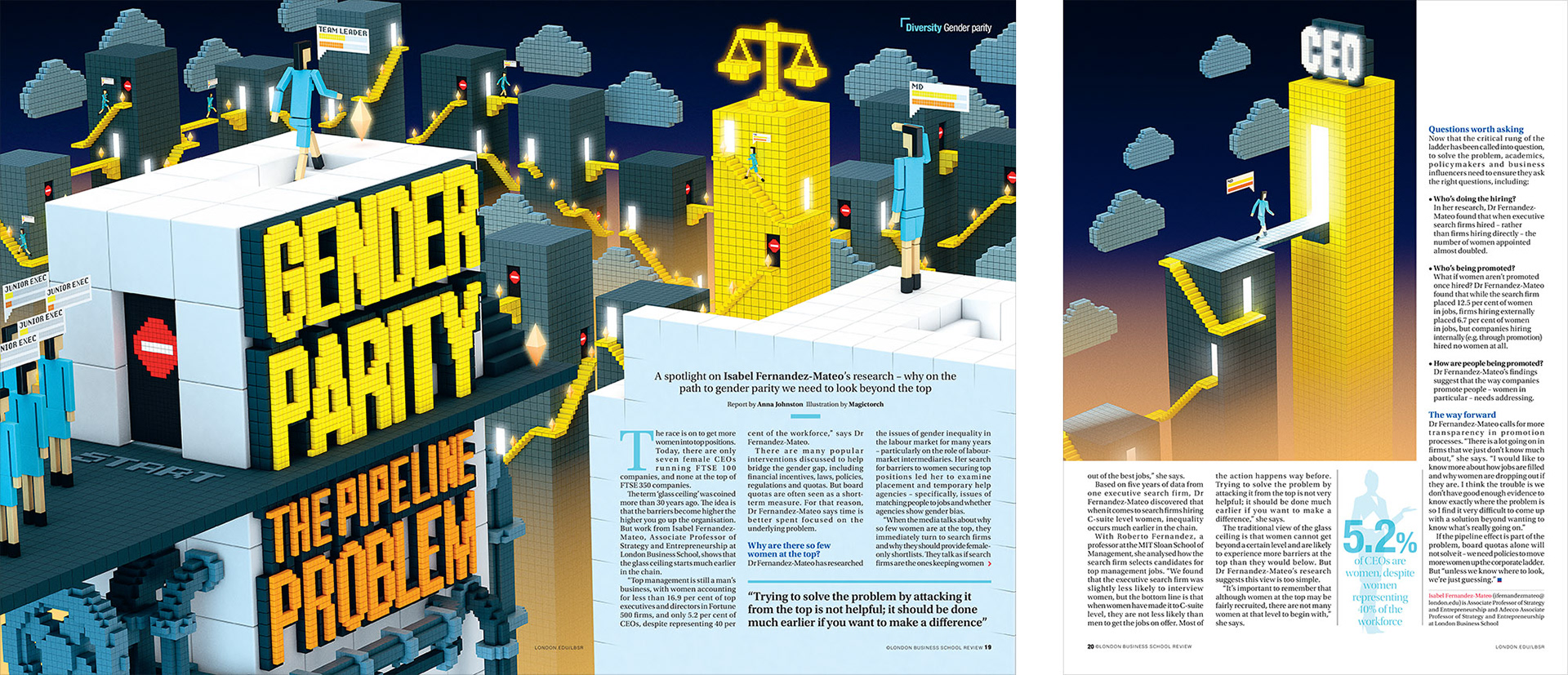 Opening spread: incorporating all the video game elements along with the typography and leaving room for the article was quite a challenge on this job.