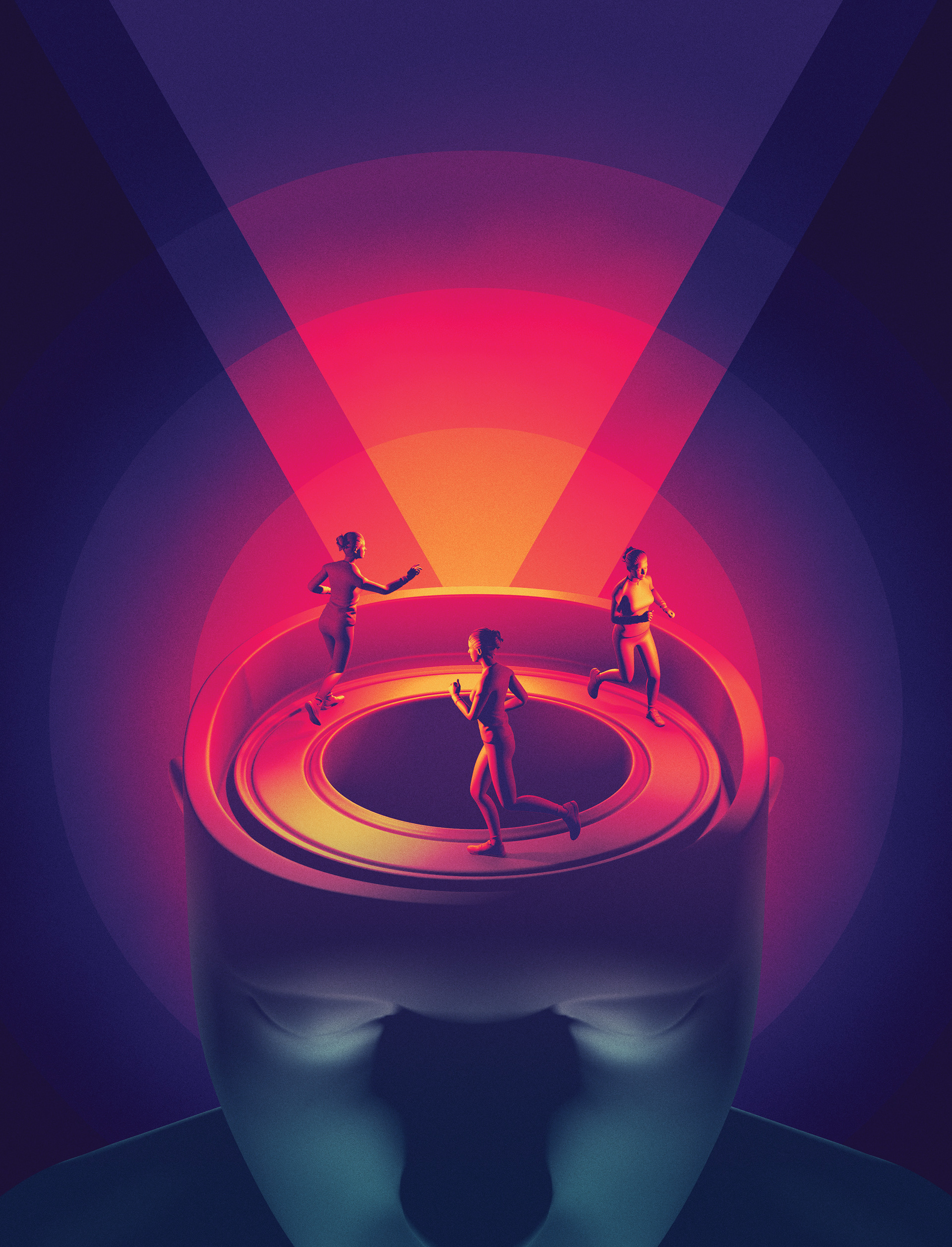 This project was always conceived with a motion piece as the final outcome. We wanted to create a looping animation that evoked the feelings of having thoughts running round and round inside your head, gnawing away, always on repeat.